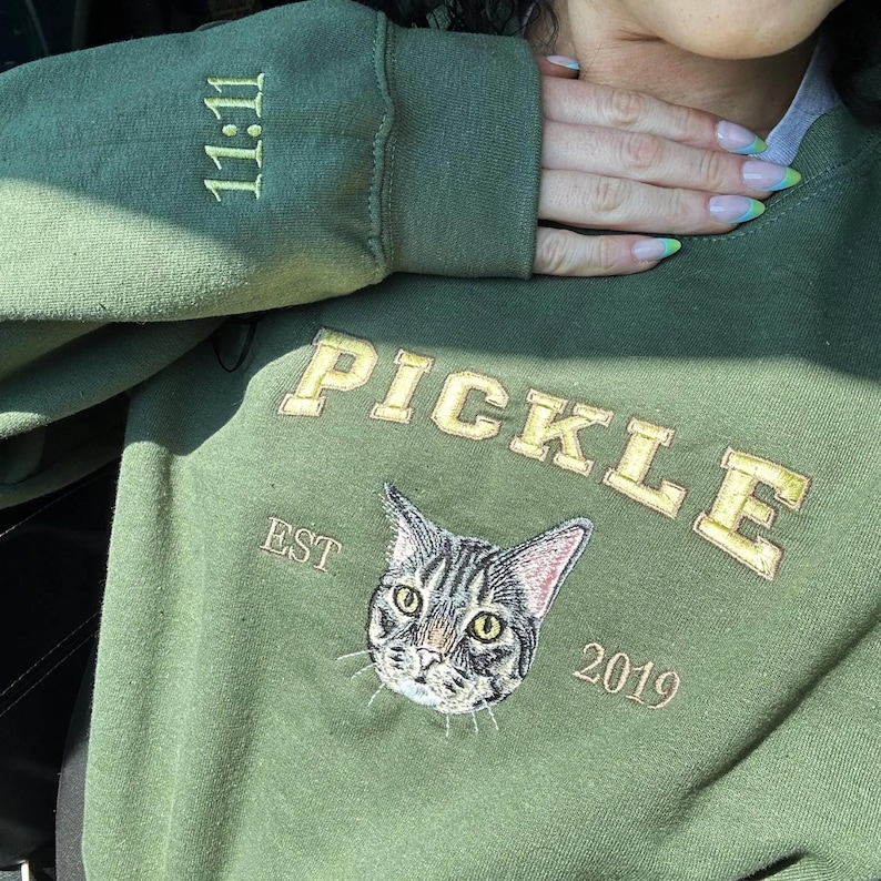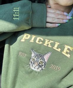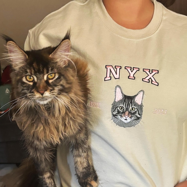 Custom Digital Prints – Embroidered Cat Sweatshirt, Personalized Cat Hoodie, Personalized Pet Face and Pet name Sweatshirt, Gift for Cats Lover, Cat Mom Gift, Gift For Mom