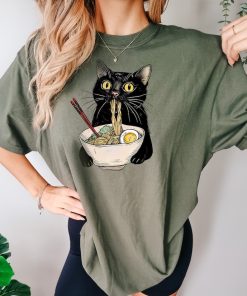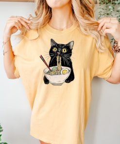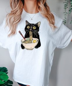 Custom Digital Prints – Noodle Cat Shirt, Ramen Cat T-Shirt, Foodie Lover Shirts, Black Cat Noodle T-Shirts, Retro Cat Tees, Cat Lover Sweatshirts, Black Cat Tee